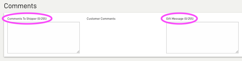 - Comments to Shipper and Gift Message fields now stop at 255 characters and include a live counter so you can see when you’re approaching the maximum