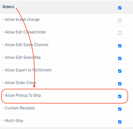 - The sub-permission for Allow Pickup To Ship.