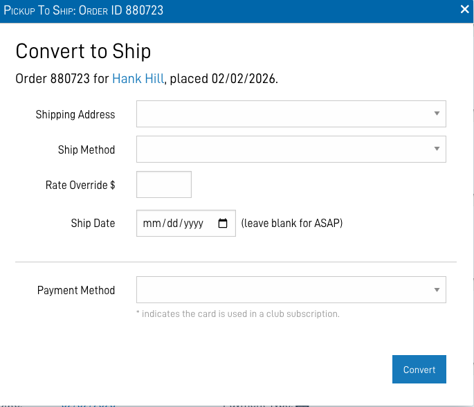 Pickup to Ship provides a flexible, operationally sound way to convert paid pickup orders into shipped orders, without compromising accounting integrity, inventory accuracy, or compliance workflows.