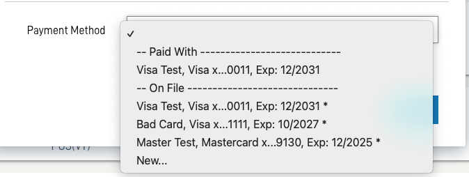 - Cards on file that are assigned to a club subscription will be marked with an asterisk.