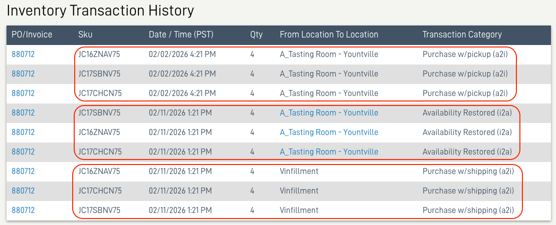 - The initial inventory transaction will be Purchase w/pickup (a2i), from the location designated in your Location Settings in the Company Settings. Presumably your tasting room.