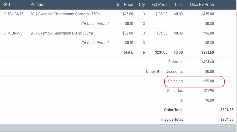 Shipping amount: The shipping rate is added to the invoice Shipping line, and added to the total.