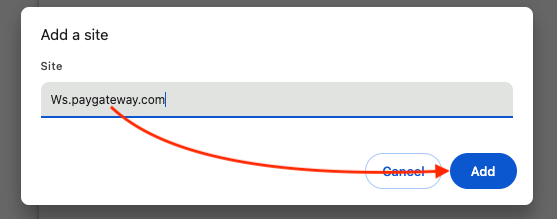 Under Customized behaviors -> Allowed to send pop-ups and use redirects click Add