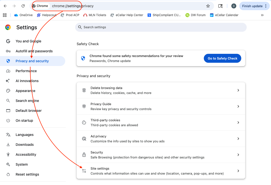 - Select Privacy and Security